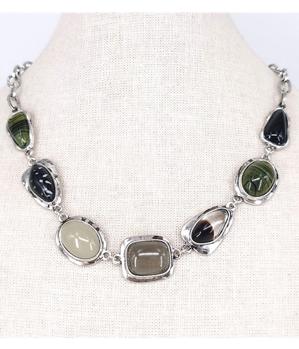 WHOLESALE VINTAGE RESIN STONE MIX NECKLACE 479344