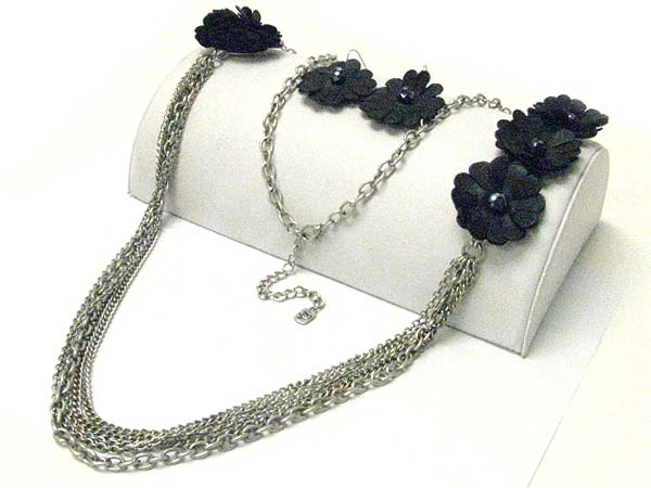 Crystal deco multi metal flower drop and chiffon tangled chain necklace and earring set