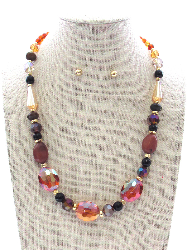 Druzy and multi facet glass bead mix 4 stretch bracelet set