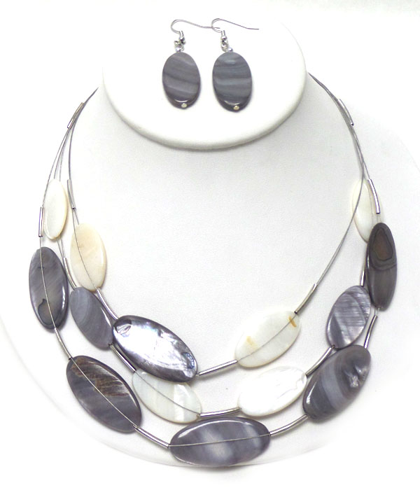 Double layer semi precious stone pendant double chain necklace (2pc)