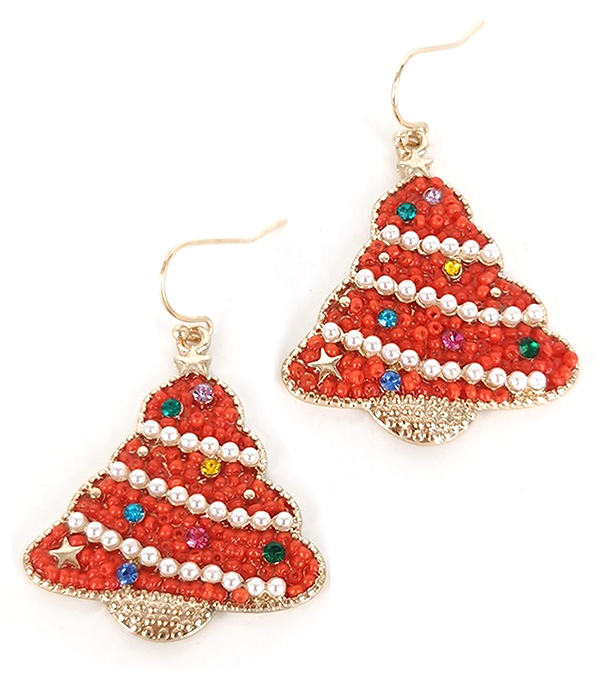Christmas theme multi clay bead mix 5 stretch bracelet set - tree