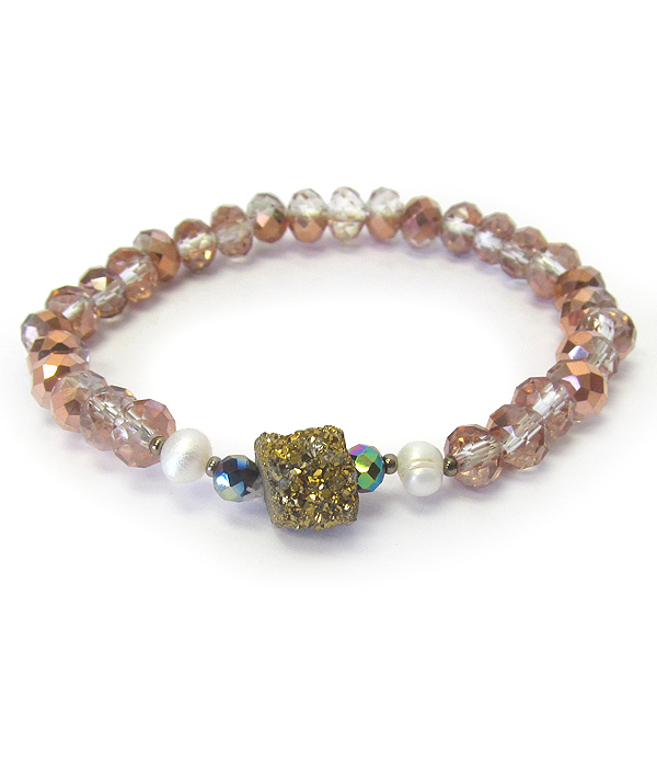 Crystal and abalone finish acryl stone cocktail necklace earring set -shourouk inspired