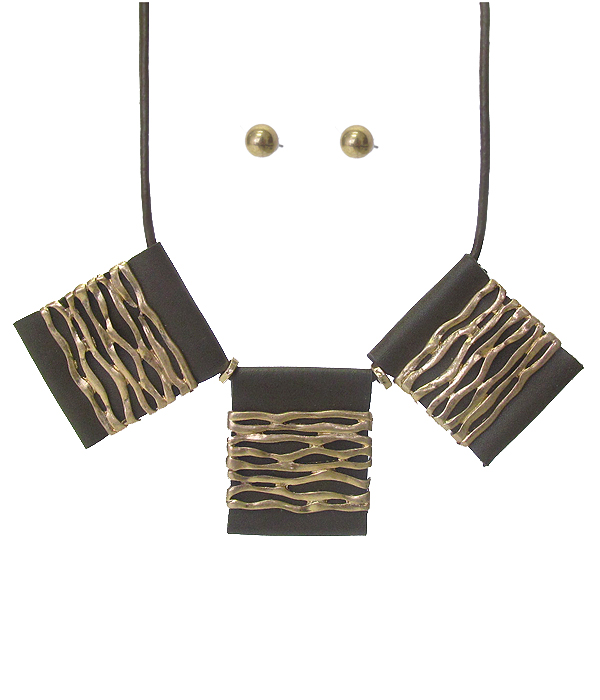 Metal and acryl half oval plate trust no man theme drop chain necklace earring set