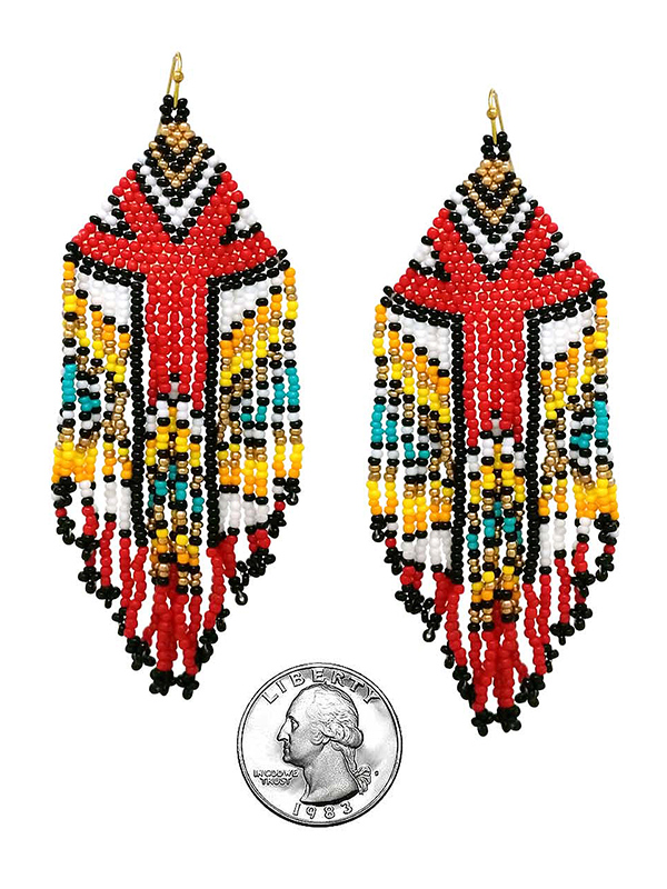 Handmade multi seedbead patriotic theme eagle earring - american flag