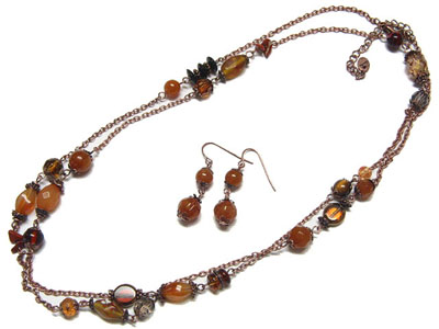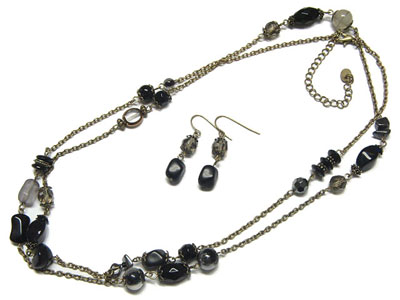 WHOLESALE MULTI NATURAL STONE AND BEADS LONG NECKLACE AND EARRING SET 107149