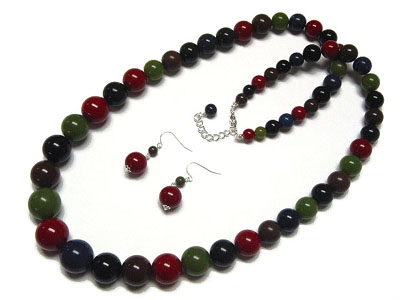 WHOLESALE ACRYL ROUND BALL BEADS NECKLACE AND EARRING SET 107161
