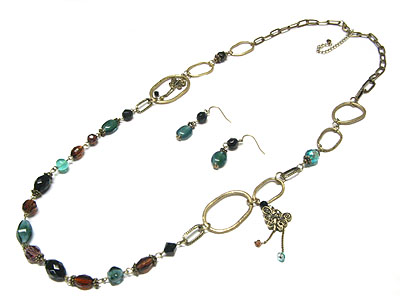 WHOLESALE GENUINE GLASS BEADS LONG NECKLACE AND EARRING SET 107437