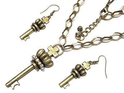 WHOLESALE ANTIQUE LOOK CRYSTAL KEY NECKLACE AND EARRING SET 108037