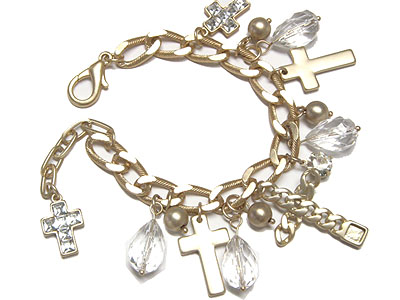 Multi crystal cross dangle chain link toggle bracelet