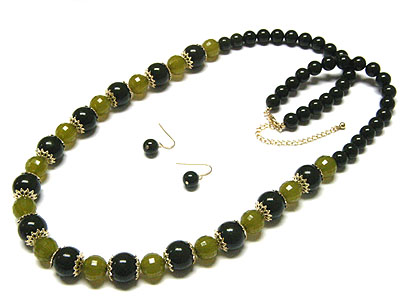 WHOLESALE GENUINE GLASS FACET AND ROUND BEADS NECKLACE AND EARRING SET 108248