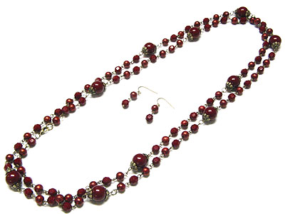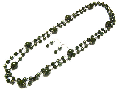 WHOLESALE FORMICA ROUND BEADS AND SMALL METAL BALL LONG NECKLACE AND EARRING SET 108273