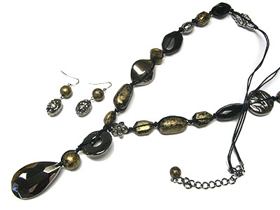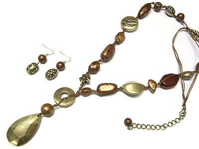 WHOLESALE MULTI SHAPE PATINA BEADS AND TEARDROP NECKLACE AND EARRING SET 108528