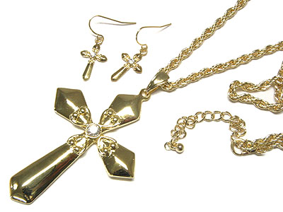 WHOLESALE CRYSTAL POST CROSS BRASS METAL NECKLACE AND EARRING SET 108739