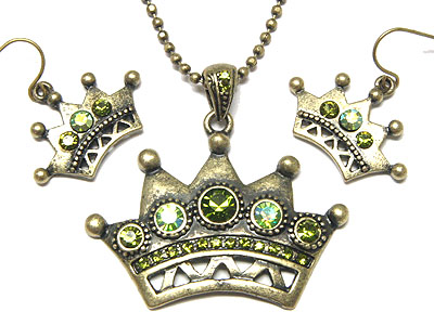 WHOLESALE VINTAGE STYLE CRYSTAL CROWN NECKLACE AND EARRING SET 108848