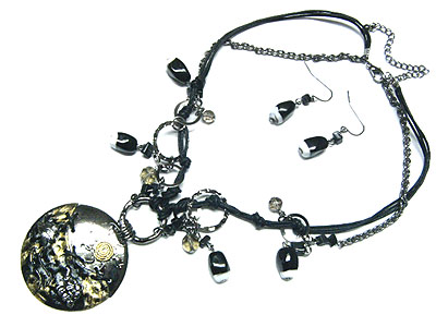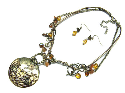 WHOLESALE HIGH FASHION ROUND PENDANT WITH MULTI BEADS NECKLACE AND EARRING SET 108886