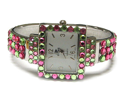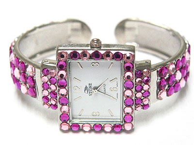 WHOLESALE FLAT CRYSTAL FACE AND BAND SQUARE FACE WOMEN WATCH - MOP 109291