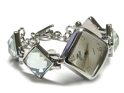 WHOLESALE FACET GLASS AND METAL LINK BAND FASHION WATCH 109312