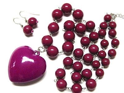 WHOLESALE ACRYL HEART AND BEADS NECKLACE AND EARRING SET 109445