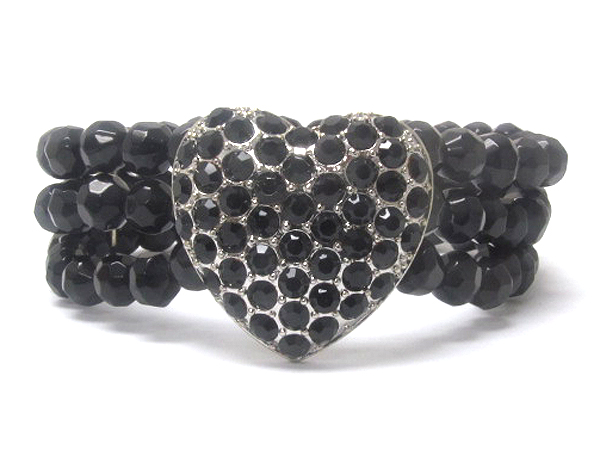 WHOLESALE CRYSTAL HEART AND TRIPLE LINE GLASS BEADS STRETCH BRACELET 109463