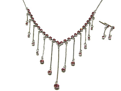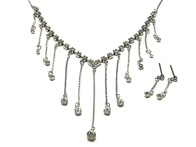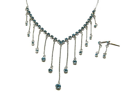 WHOLESALE MULTI LINE CRYSTAL DROP NECKLACE AND EARRING SET 122769