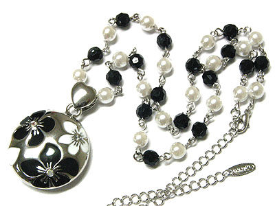 WHOLESALE EPOXY FLOWER ROUND PENDANT AND PEARL BEADS NECKLACE 139651