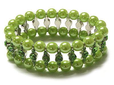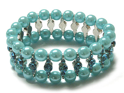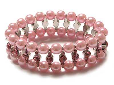 WHOLESALE DOUBLE ROW PEARL BEADS AND CRYSTAL STRETCH BRACELET 145405