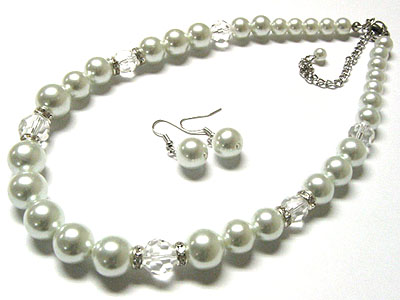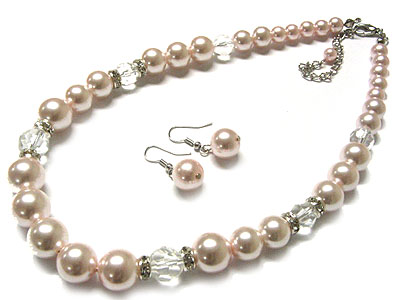 WHOLESALE GLASS PEARL AND GLASS BALL WITH CRYSTAL NECKLACE SET 145649