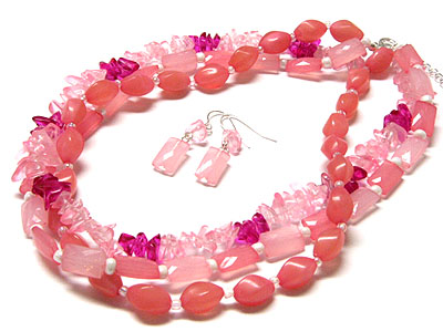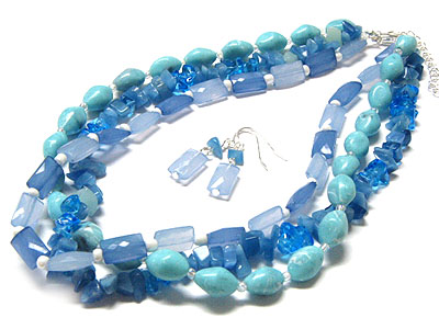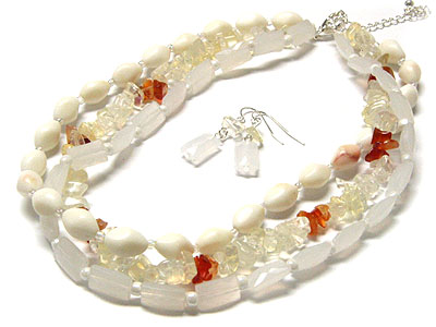 WHOLESALE THREE LINE GLASS BEAD NECKLACE SET 145817