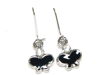 Made in korea whitegold plating crystal and enamel butterfly earring