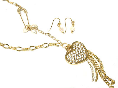 WHOLESALE CRYSTAL HEART NECKLACE SET 153848