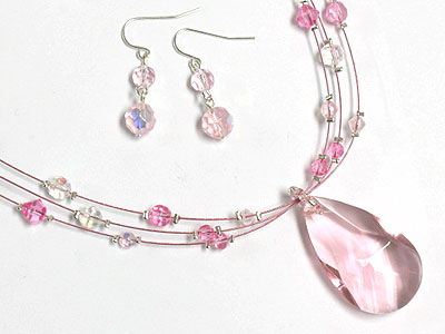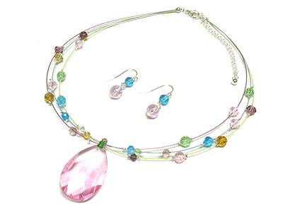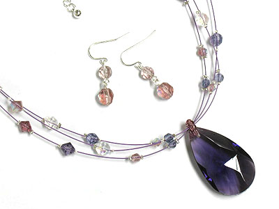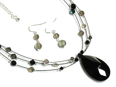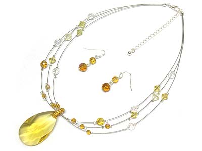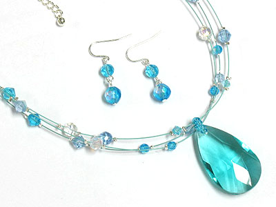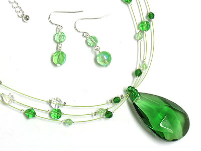 WHOLESALE GLASS TEAR DROP PENDANT AND BEADS NECKLACE AND EARRING SET 161839