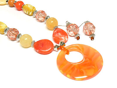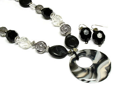 WHOLESALE ACRYL DOUNUT AND NATURAL STONE BEADS NECKLACE AND EARRING SET 161965