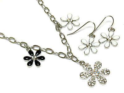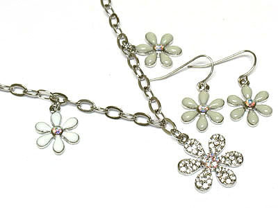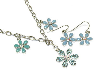 WHOLESALE CRYSTAL AND ENAMEL EPOXY FLOWER Y NECKLACE AND EARRING SET 162046