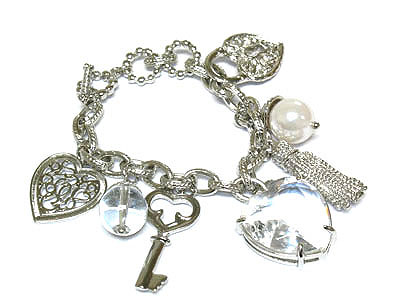 WHOLESALE CRYSTAL KEY AND LOCK AND HEART CHARM BRACELET 162127