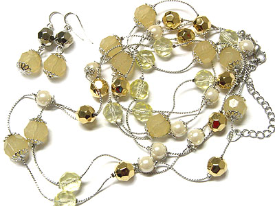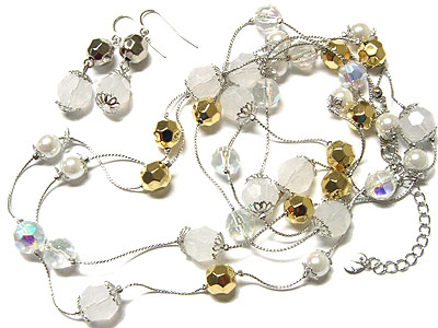 WHOLESALE ICY AND METALLIC BEAD LONG NECKLACE SET 162325