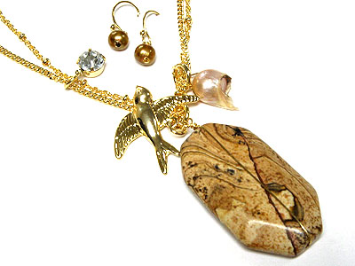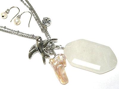 WHOLESALE TURQUOISE STONE AND MOP AND PEARL NECKLACE AND EARRING SET - BIRD 165011