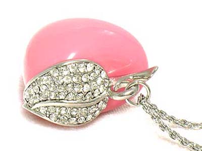 Solid acryl apple with crystal leaf necklace