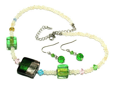 WHOLESALE MURANO GLASS STYLISH ART DECO NECKLACE AND EARRING SET 172054