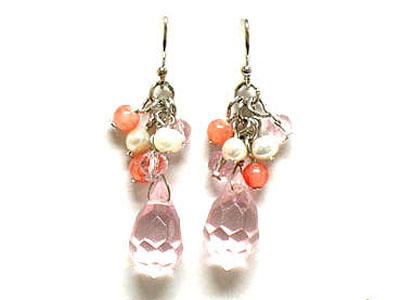 WHOLESALE FACET BALL AND MULTI PEARL DANGLE EARRING 172083