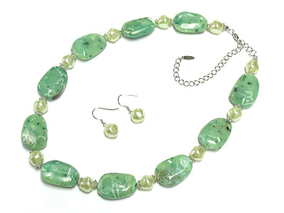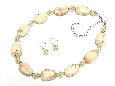 WHOLESALE NATURAL LOOK MARBLE ACRYL STONE NECKLACE AND EARRING SET 174364