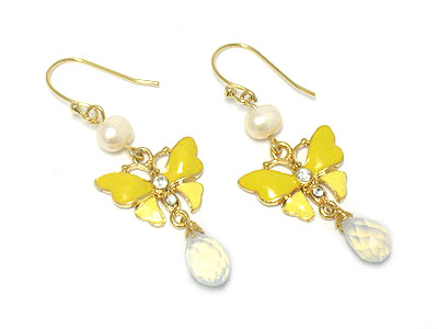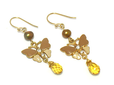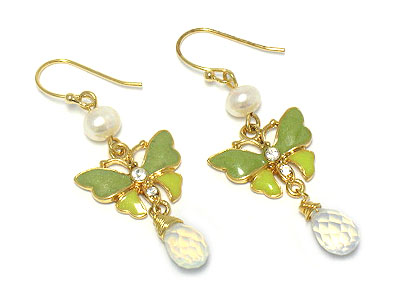 WHOLESALE DYED FRESH WATER PEARL AND ENAMEL BUTTERFLY DROP EARRING 174521