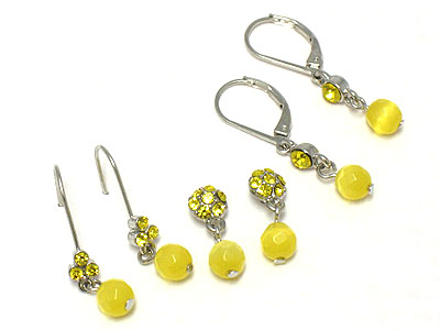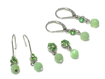WHOLESALE CRYSTAL DECO GLASS BALL DROP EARRING - 3 PAIR SET - STUD,HOOK,FRENCH 174537
