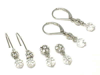 Crystal deco glass ball drop earring - 3 pair set - stud,hook,french
