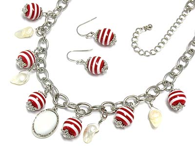 Nautical theme ball and mop partical dangle neckalce and earrign set