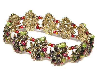 WHOLESALE FRESH WATER PEARL AND CRYSTAL DECO STRETCH BRACELET 174611