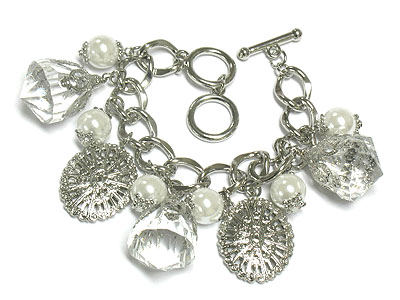 WHOLESALE ROCK CRYSTAL LOOK LUCITE CHARM AND METAL FILIGREE CHARM DANGLE BRACELET - NUDE FASHION TREND 177074