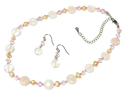 WHOLESALE SEMI PRECIOUS STONE NECKALCE AND EARRING SET SNOW QUARTZ 177125
