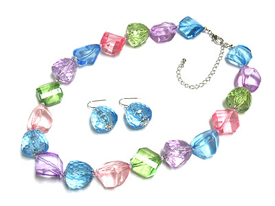 WHOLESALE LUCITE MULTI ICE BEAD NECKLACE SET 177544