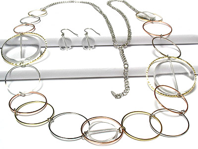 WHOLESALE CIRCULAR METAL LINK WITH CLEAR ACRYLIC DISK NECKLACE SET - NUDE FASHION TREND 178364