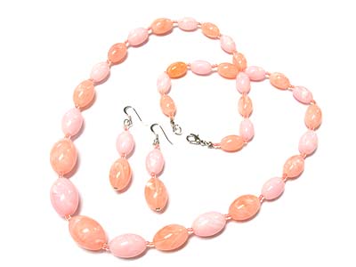 WHOLESALE MARBLIC RESIN BEADS LONG NECKLACE AND EARRING SET 178651